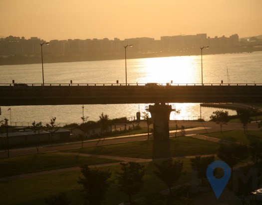 한강공원 도로 전경과 구조물