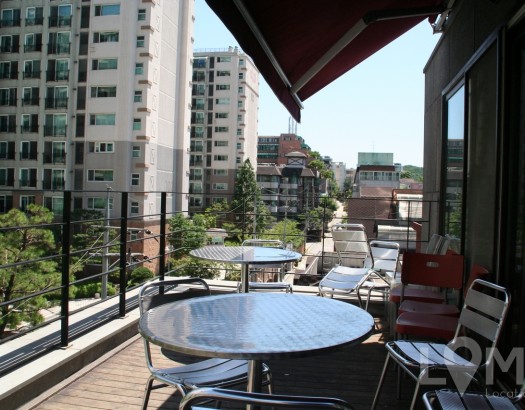 테라스에서 휴식을 취할 수 있는 사무실
