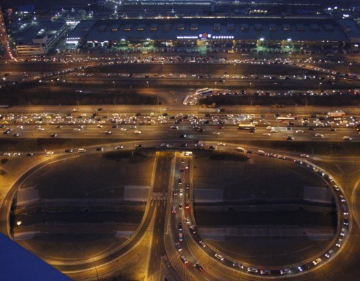 서울 도로와 교차로의 화려한 빛을 볼 수 있는 뷰