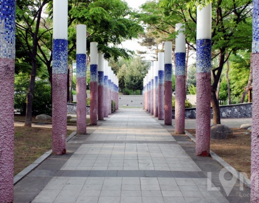 한국적인 멋의 기둥이 있는 공원