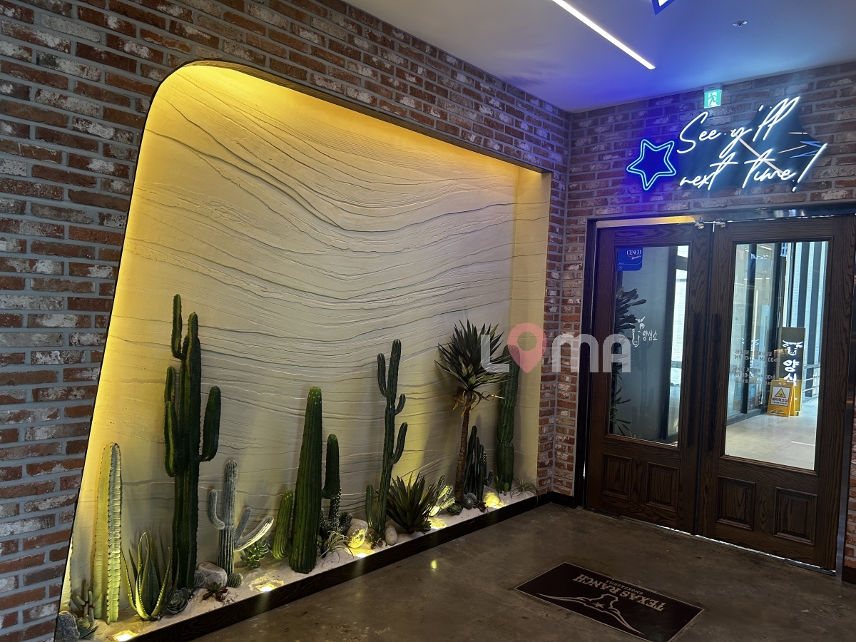 넓은 실내 공간과 개방적인 루프탑을 갖춘 이 공간은 고급 브라운 톤 인테리어와 통유리창을 통해 자연 풍경을 한눈에 담아내는 특별한 장소입니다. 130평 규모의 여유 있는 내부는 미국 텍사스 스타일의 이국적이면서도 따뜻한 감성을 지니고 있으며, 통창 너머로 펼쳐지는 공원 전경과 루프탑 공간은 촬영 시 시원한 개방감과 감각적인 무드를 연출하기에 충분합니다. 자연을 곁에 둔 매장 외부는 산책 후 휴식을 취하는 일상적인 장면부터, 루프탑에서의 데이트, 라이브 공연, 이벤트 장면까지 다양한 연출이 가능합니다. 특히 루프탑에서 진행되는 야간 영상 쇼의 시각적 요소를 활용하면 더욱 풍부한 배경미를 연출할 수 있어, 광고, 드라마, 뮤직비디오 등 다채로운 장르의 촬영에 적합합니다.
