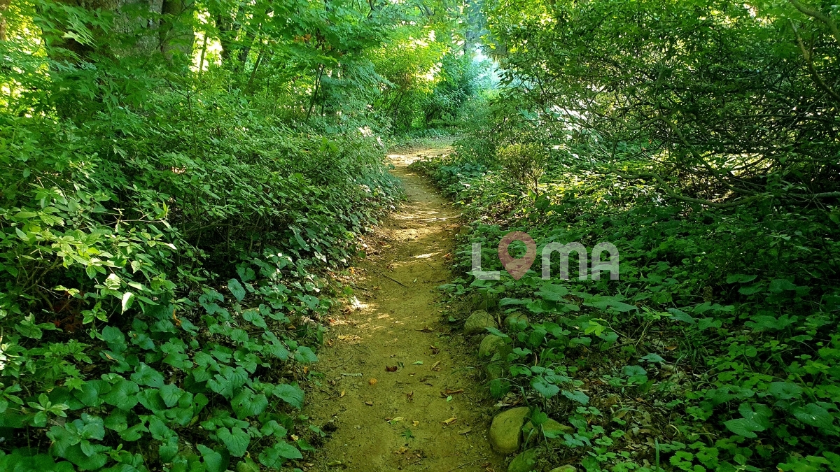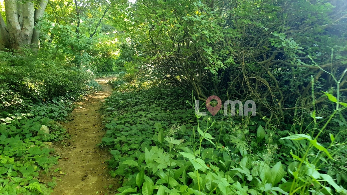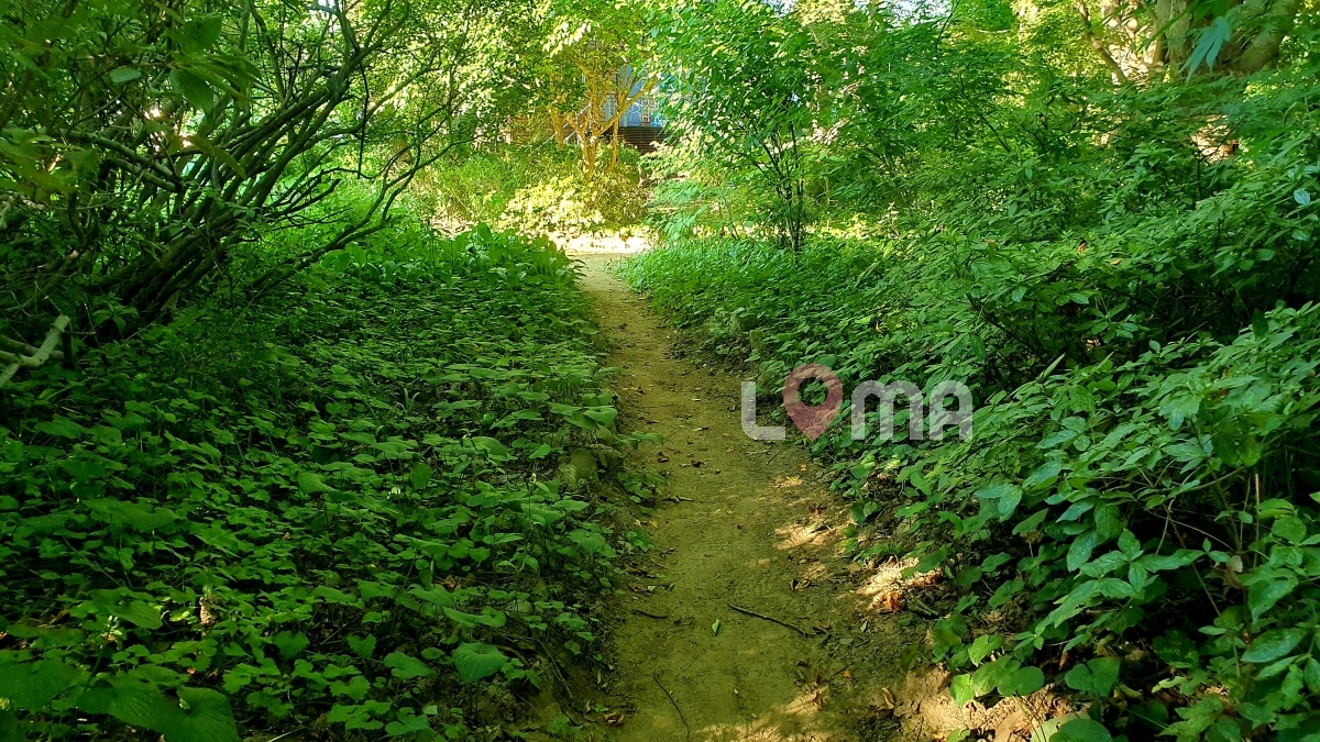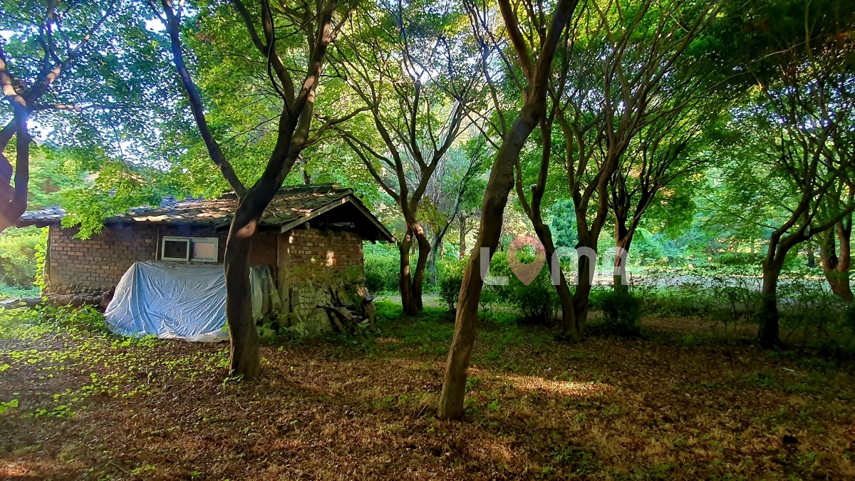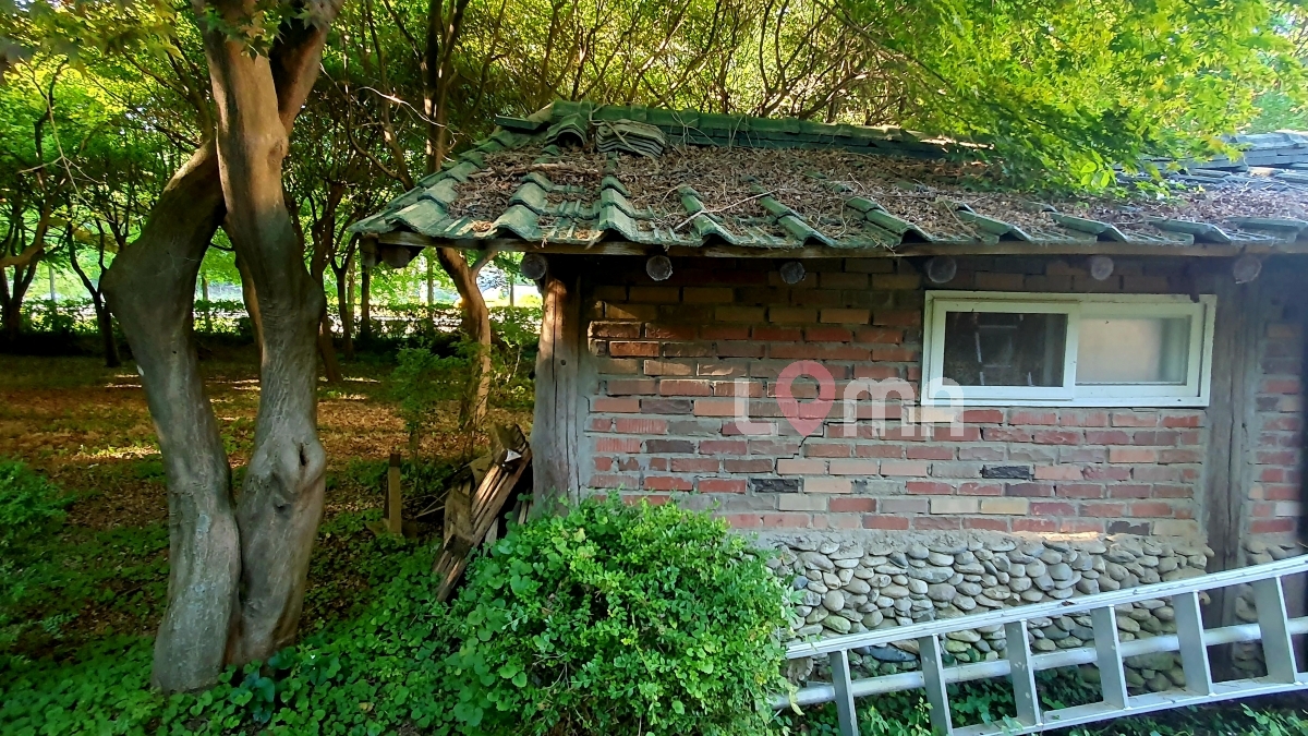 울창한 숲길 속에 자리한 오래된 흙벽돌집입니다. 낡은 지붕과 벽돌 외벽이 숲 사이로 스며드는 빛과 어우러지며 외딴집 특유의 적막감이 느껴집니다