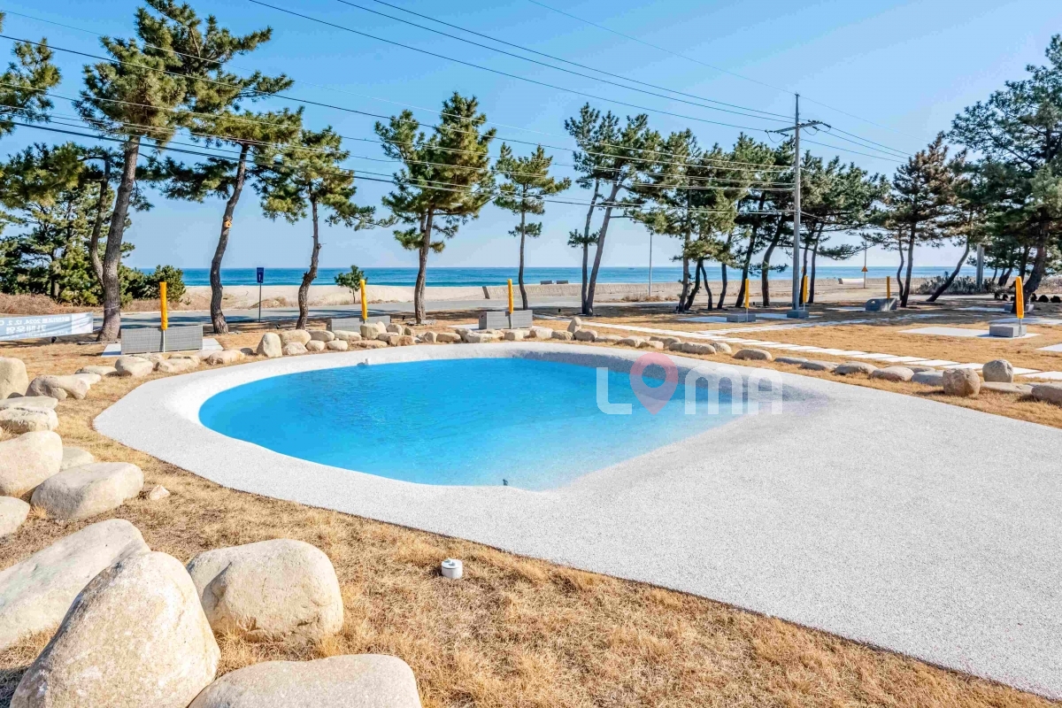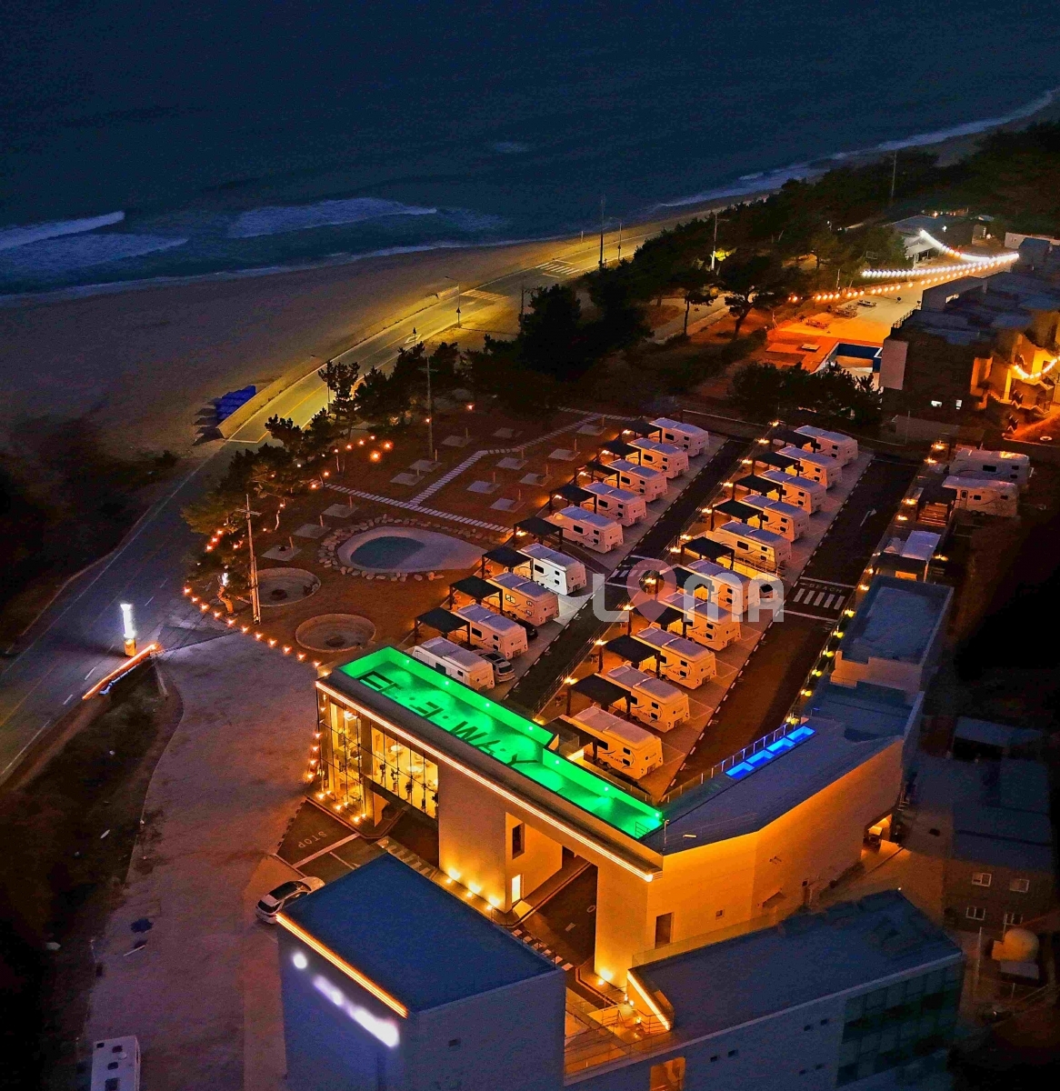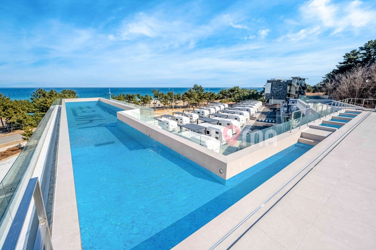 일출이 아름다운 동해바다 바로 앞에 위치해있으며 카라반 글램핑, 풀빌라, 펜션, 게스트하우스의 다양한 객실타입이 운영되고 있는 복합숙박시설입니다. 온천수 토출지역으로 해수 미네랄 온천수를 마음껏 즐길 수 있습니다. 부대시설로는 26m 초대형 온천수 인피니티 풀장, 울진 최고 깊이 10m다이빙 잠수풀, 오션뷰 카페, 24시 무인 매점, 천연 잔디마당, 애견수영장, 초대형 캠프파이어핏, 식당 등이 운영되고 있습니다. 애견동반이 가능한 숙소라 애견촬영이 용이하며 넓은 부지로 다양한 각도의 촬영이 가능합니다. 천연 잔디마당 구역을 제외한 부지 내부는 전부 포장도로로 장비이동이나 차량이동이 수월한 장점이 있습니다. 도보 1분이면 기성 망양해수욕장으로 바로 갈 수 있어 해안가 절경을 감상할 수 있습니다.