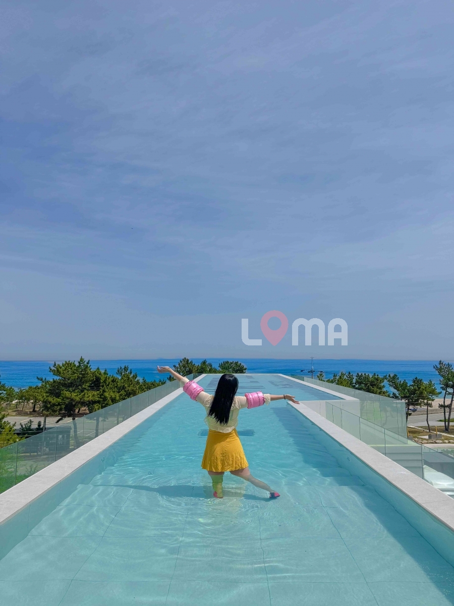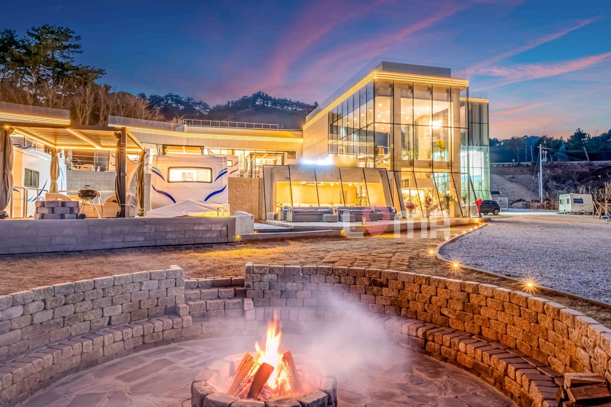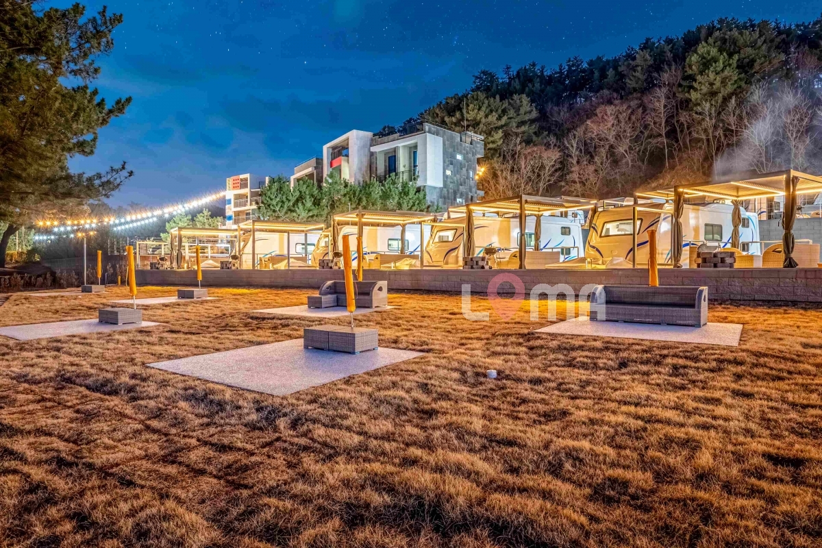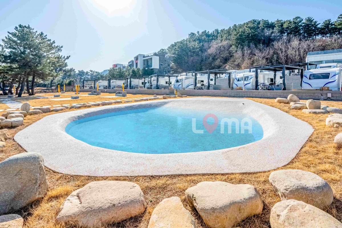 일출이 아름다운 동해바다 바로 앞에 위치해있으며 카라반 글램핑, 풀빌라, 펜션, 게스트하우스의 다양한 객실타입이 운영되고 있는 복합숙박시설입니다. 온천수 토출지역으로 해수 미네랄 온천수를 마음껏 즐길 수 있습니다. 부대시설로는 26m 초대형 온천수 인피니티 풀장, 울진 최고 깊이 10m다이빙 잠수풀, 오션뷰 카페, 24시 무인 매점, 천연 잔디마당, 애견수영장, 초대형 캠프파이어핏, 식당 등이 운영되고 있습니다. 애견동반이 가능한 숙소라 애견촬영이 용이하며 넓은 부지로 다양한 각도의 촬영이 가능합니다. 천연 잔디마당 구역을 제외한 부지 내부는 전부 포장도로로 장비이동이나 차량이동이 수월한 장점이 있습니다. 도보 1분이면 기성 망양해수욕장으로 바로 갈 수 있어 해안가 절경을 감상할 수 있습니다.