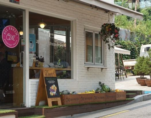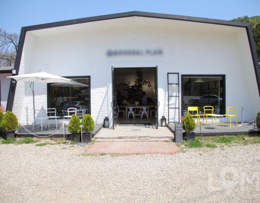 화이트 벽돌과 큰창문으로 멋을 낸 아담한 카페 외부