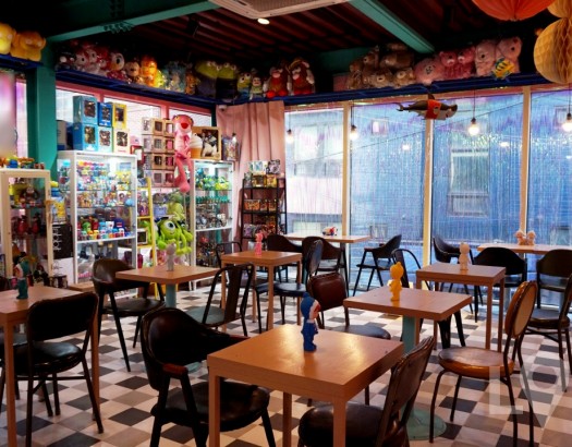 뮤직비디오에 나올 것 같은 장난감이 세팅된 소품샵 카페